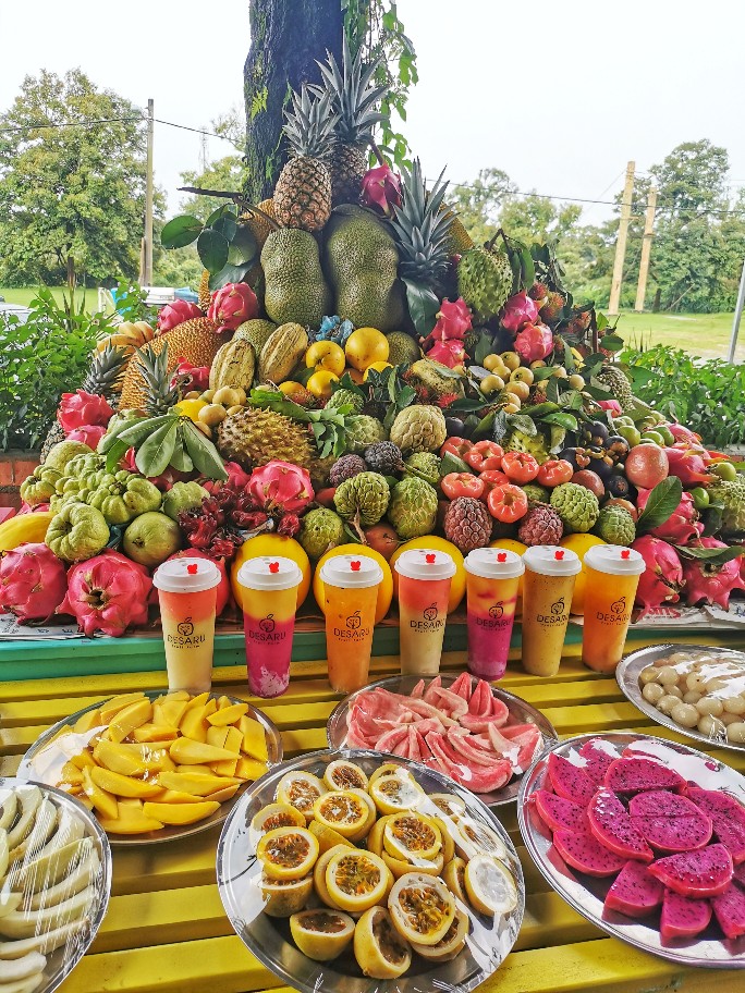 Guava, jackfruit, dragon fruit, passion fruit, watermelon, banana, pineapple, mangosteen, longan, papaya, rose apple, pickles, honeydew, Rambutan, guava, pineapple and many more.