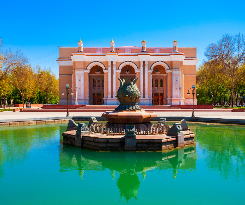 The Alisher Navoi Bolshoi Theatre is one of Central Asia’s most prestigious cultural landmarks, named after Uzbekistan’s beloved poet Alisher Navoi. The theatre is a masterpiece of Soviet-era architecture blended with Uzbek artistic elements, featuring marble columns, gold interiors, and ornate ceilings. It hosts grand ballet and opera shows, sometimes performed by world-famous international troupes. Even from the outside, the building is spectacular — its symmetrical design and surrounding gardens make it a favorite photo stop for tourists. Guided tours are sometimes available for visitors to see backstage and learn about the theatre’s history, including how Japanese prisoners of war helped complete its construction after World War II. Whether you attend a performance or simply admire it from outside, this theatre showcases Uzbekistan’s cultural pride and artistic excellence.