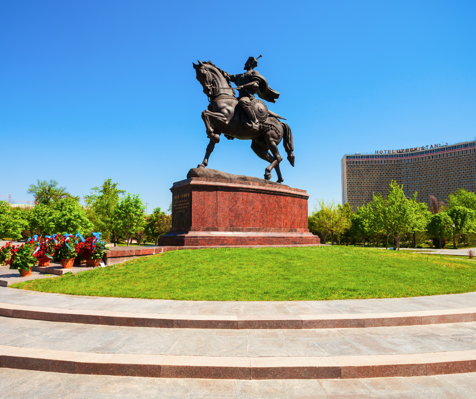Amir Temur Square is a lively hub in Tashkent dedicated to Amir Temur, also known as Tamerlane — the legendary conqueror who built a vast Central Asian empire. At the center of the square stands a powerful bronze statue of Amir Temur on horseback, with his iconic motto at the base: “Strength is in Justice.” The square is surrounded by significant buildings including the Uzbekistan Hotel, museums, and gardens that make it a popular stop for both tourists and locals. This is a wonderful place for photos and for learning about how Uzbekistan honors its historical leaders. As you stand here, imagine the Silk Road era, when Temur ruled cities, scholars, and armies that shaped history far beyond Central Asia. The energy here reflects national pride and historical greatness.